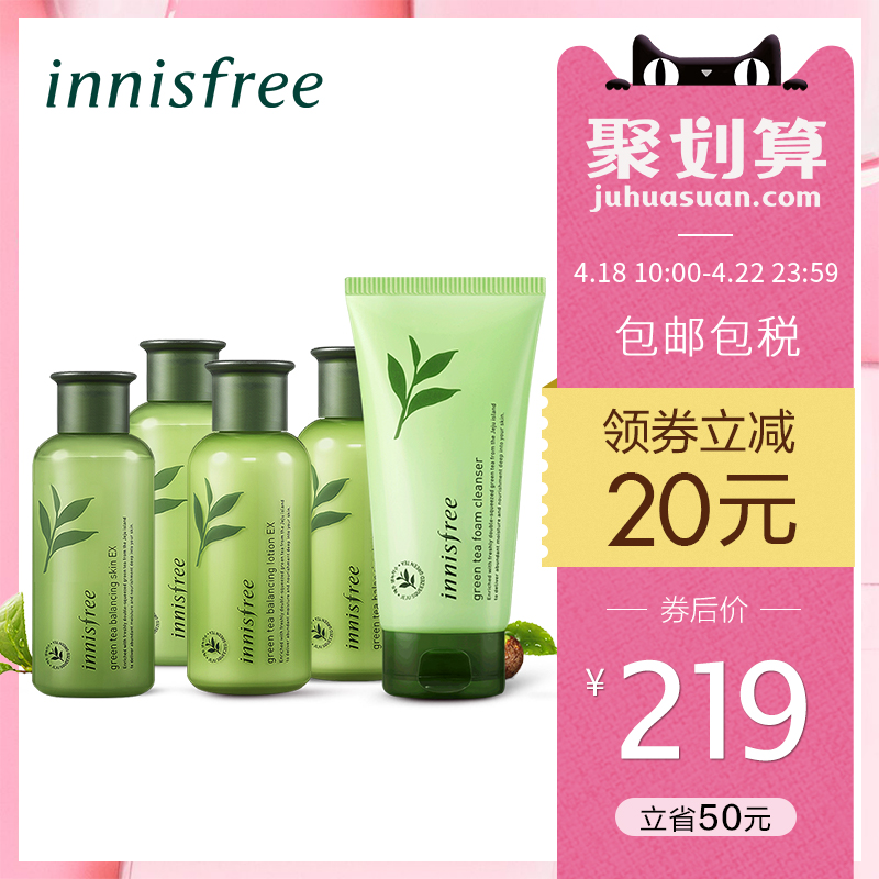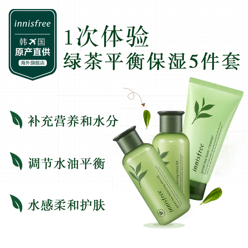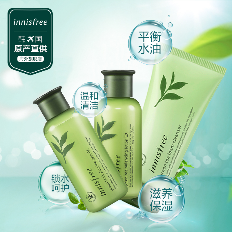 innisfree官方韩国悦诗风吟绿茶平衡洁面水乳套装5件补水保湿控油