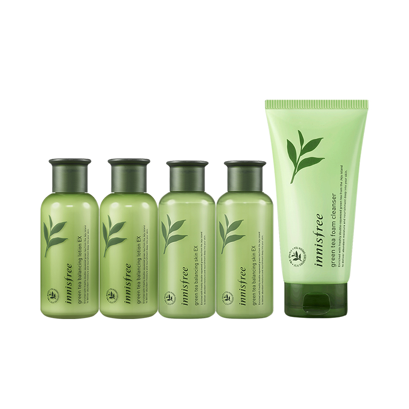 innisfree官方韩国悦诗风吟绿茶平衡洁面水乳套装5件补水保湿控油 绿色