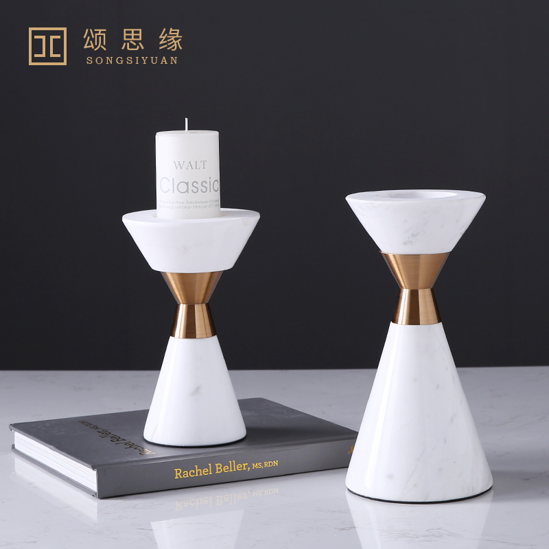 新古典大理石烛台 后现代美式北欧简约样板间酒店玄关装饰品摆件